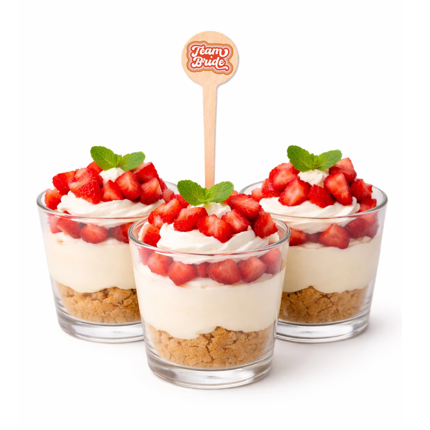 Our Bridal Shower Dessert Picks feature a smooth, round top with a pointed end, making them ideal for securing bite-sized desserts while also serving as decorative accents. The round surface is perfect for color printing or customization with names, dates, monograms, or icons that reflect your bridal theme.